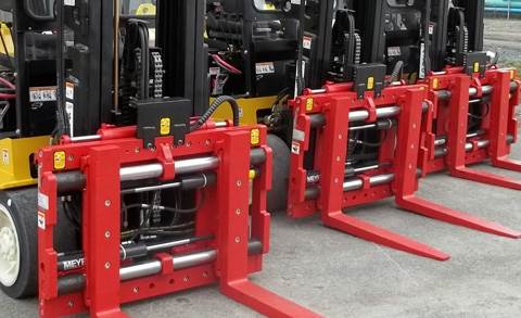 調(diào)距叉廣泛應用于第三方物流。裝卸時搬運各種托盤、盒子、籠子和空運集裝箱,負載貨物的尺寸變化較大。叉車租賃車隊必須全天候進行多種工況的應用。